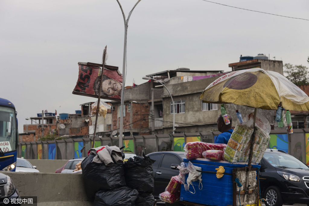 危险 里约贫民拦车叫卖铁网已隔开贫民区